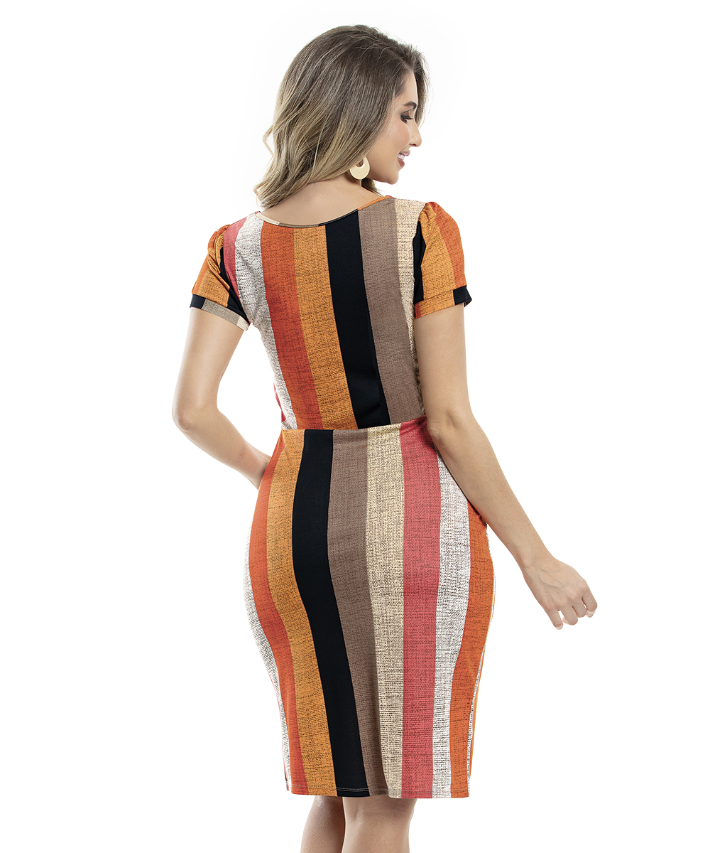 Equilibre a elegância e o estilo casual com nosso vestido, destacando-se pelas listras coloridas que adicionam um toque vibrante! Perfeito para ocasiões que pedem sofisticação descontraída.