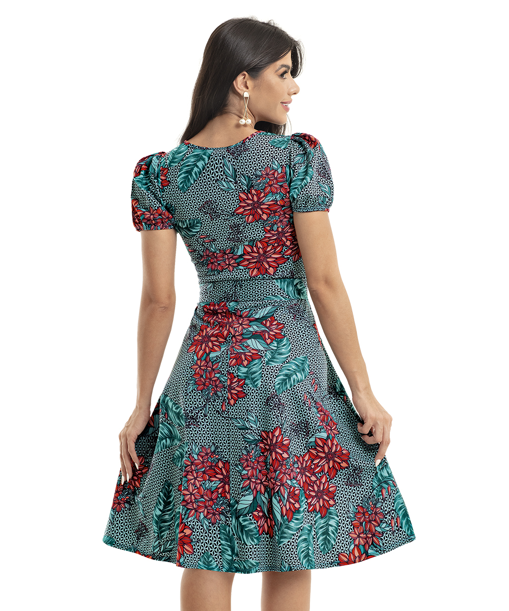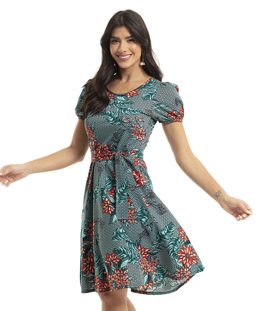 Com mangas bufantes e saia rodada, esse é o vestido que traz romantismo, delicadeza na medida certa para o seu dia a dia. Combine com acessórios, tênis ou sandália e fique linda.