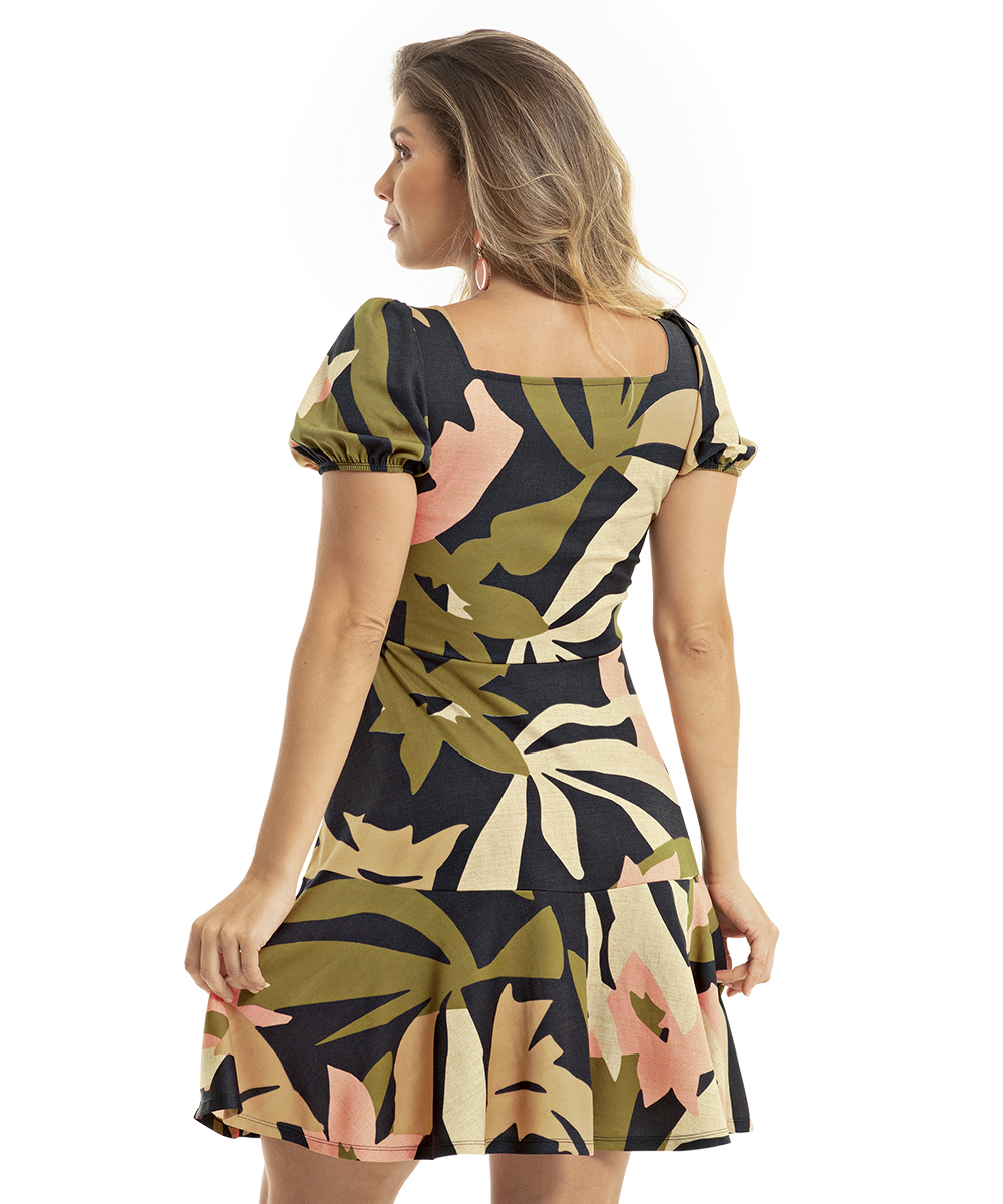 Com uma modelagem romântica e delicada e estampa moderna em tons harmoniosos, esse é o look perfeito para qualquer ocasião. Combine com acessórios e arrase.