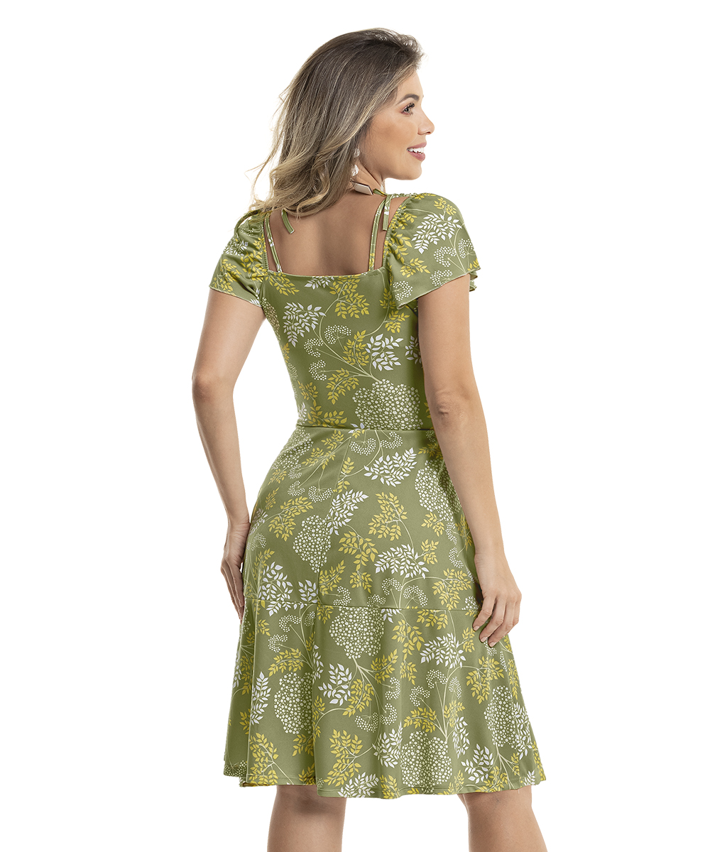 Delicado, moderno e confortável. Com o comprimento clássico, decote quadrado e saia rodada esse é aquele vestido ideal para os dias quentes em que você precisa estar elegante.