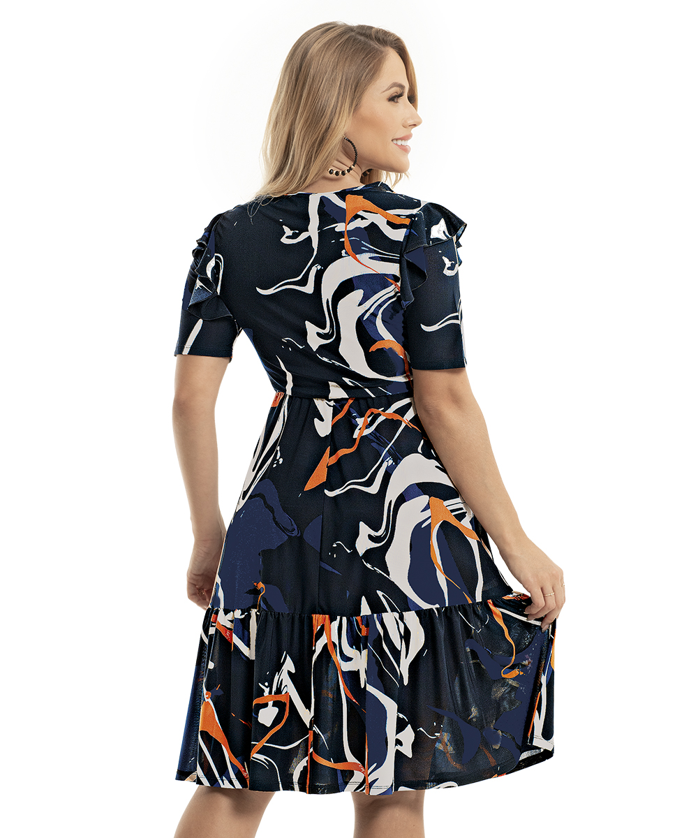 Romântico e sofisticado, este vestido clássico com babados nas mangas e saia é perfeito para qualquer ocasião. Combine com uma sandália para uma proposta elegante, ou com um tênis para uma proposta casual chique.