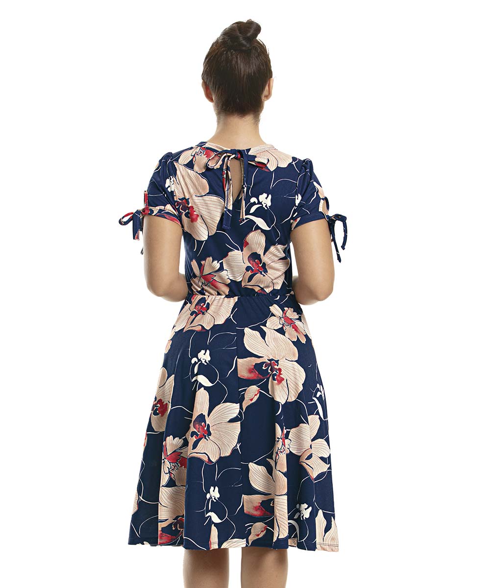 Leve, soltinho e confortável, mas sem perder o bom gosto. Esse lindo modelo com saia godê com franzido e comprimento clássico traz o que há de melhor tanto na combinação de cores, quanto no caimento. As amarrações nas mangas dão o toque final!