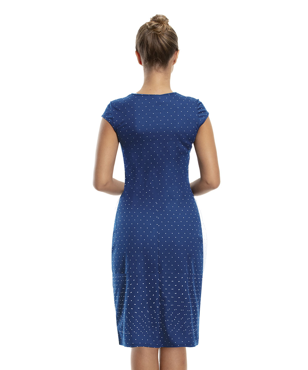 Vestido com decote redondo, detalhe na abertura do decote e mangas japone-