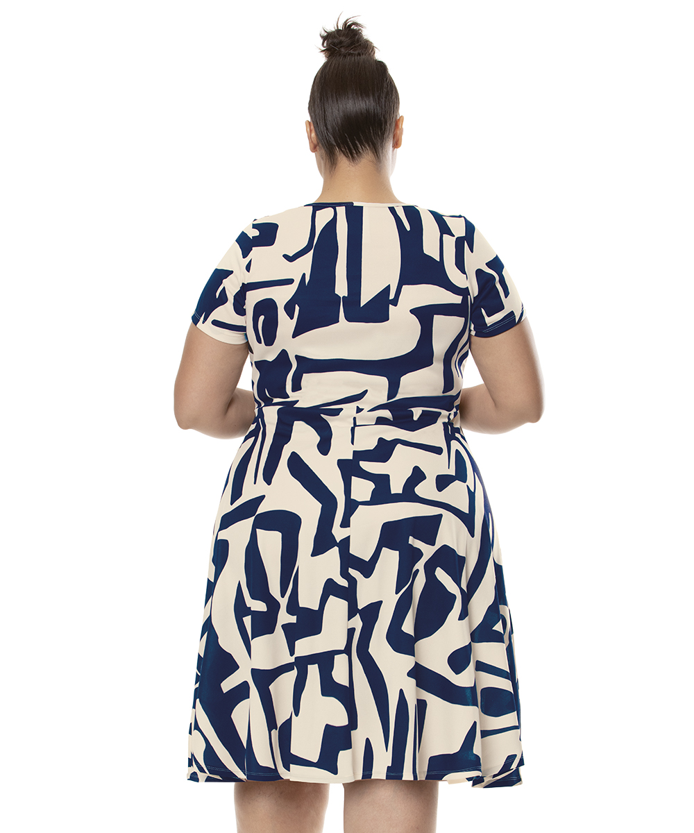 Esse vestido combina a modelagem tradicional com a modernidade da estampa abstrata, deixando o look super estiloso. É o modelo perfeito para você arrasar em qualquer ocasião.