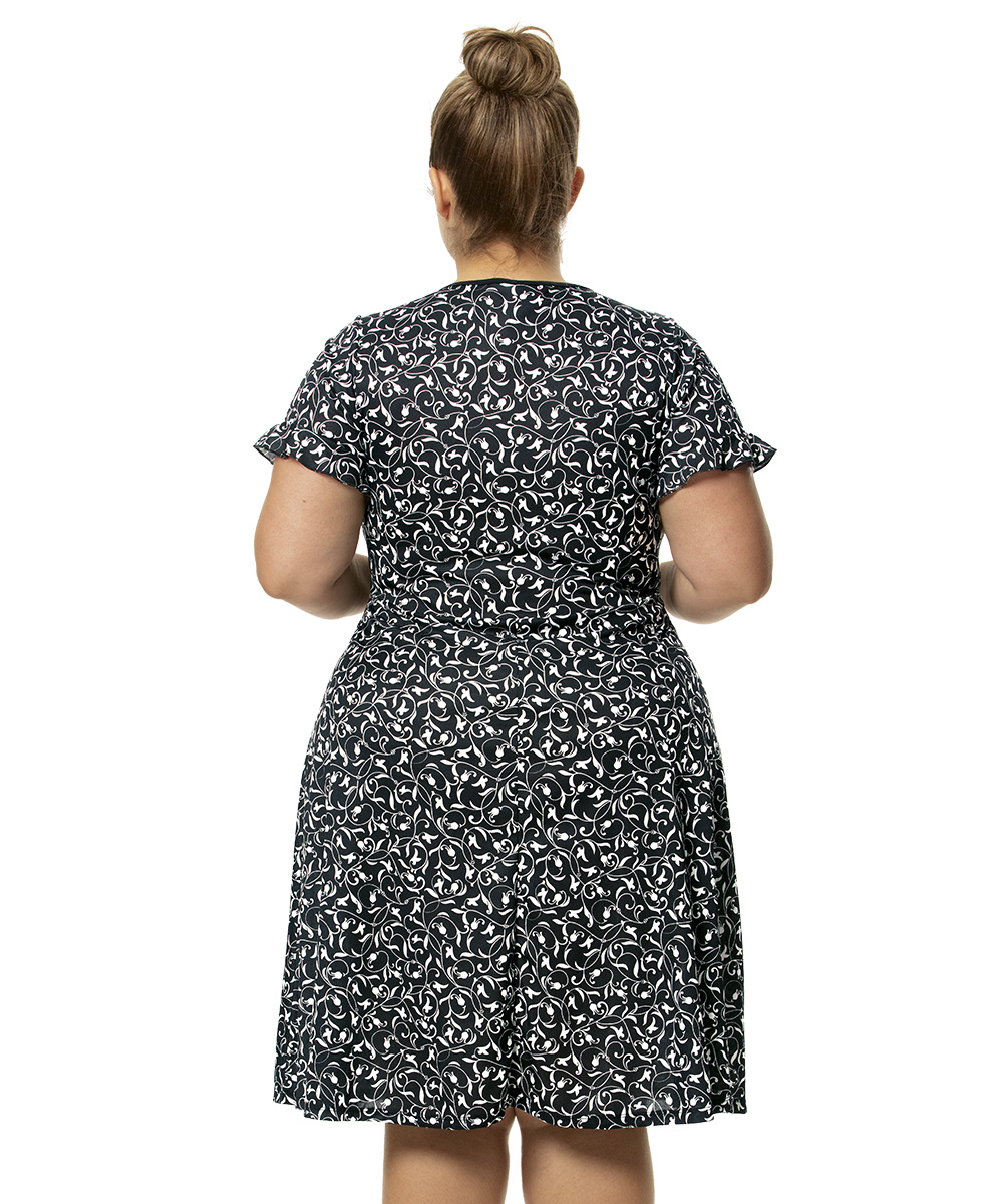 Com uma estampa que dá equilibrio ao fundo preto e um cinto embutido que acintura na medida certa, você vai arrasar!