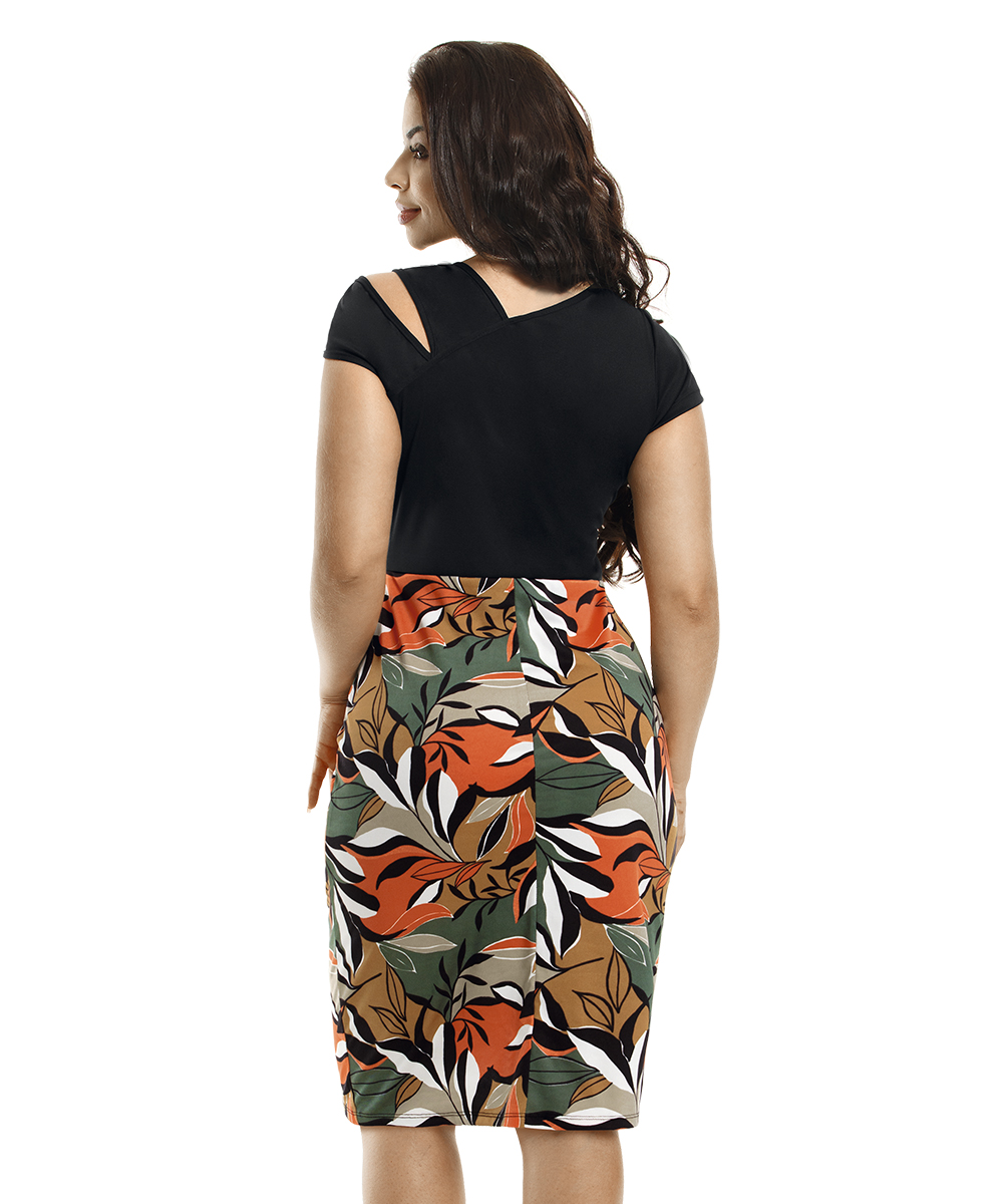 Um verdadeiro luxo essa peça! Além da manga estilizada, o vestido ainda conta com uma fantástica combinação de cores e tecidos. Perfeito para compor um look imponente, clássico e super feminino.