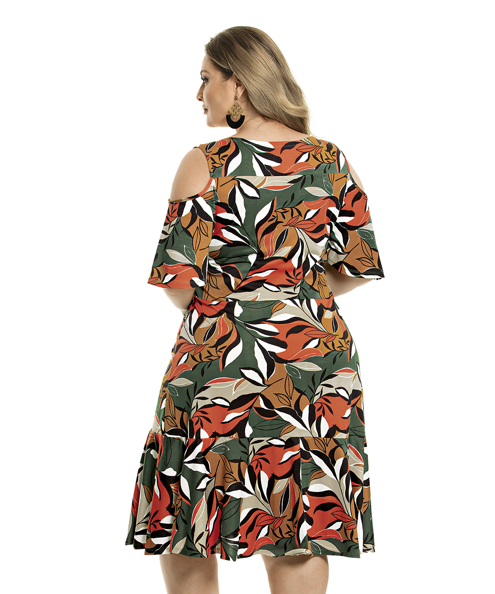 Moderno e com uma combinação de cores maravilhosa, esse vestido é a pedida certa para você, que gosta de estampas elegantes. Além disso, os ombros de fora dão um super charme ao look.