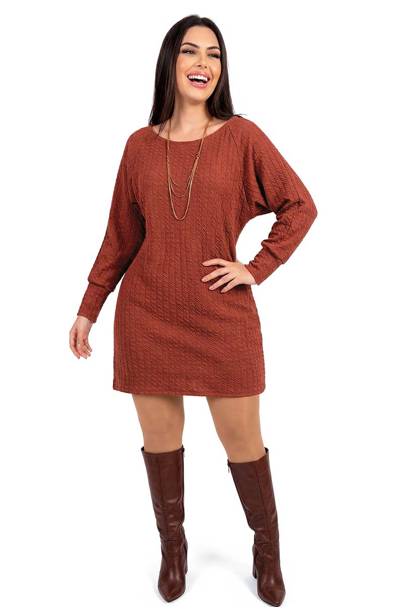 Vestido em malha crepe encorpada com textura