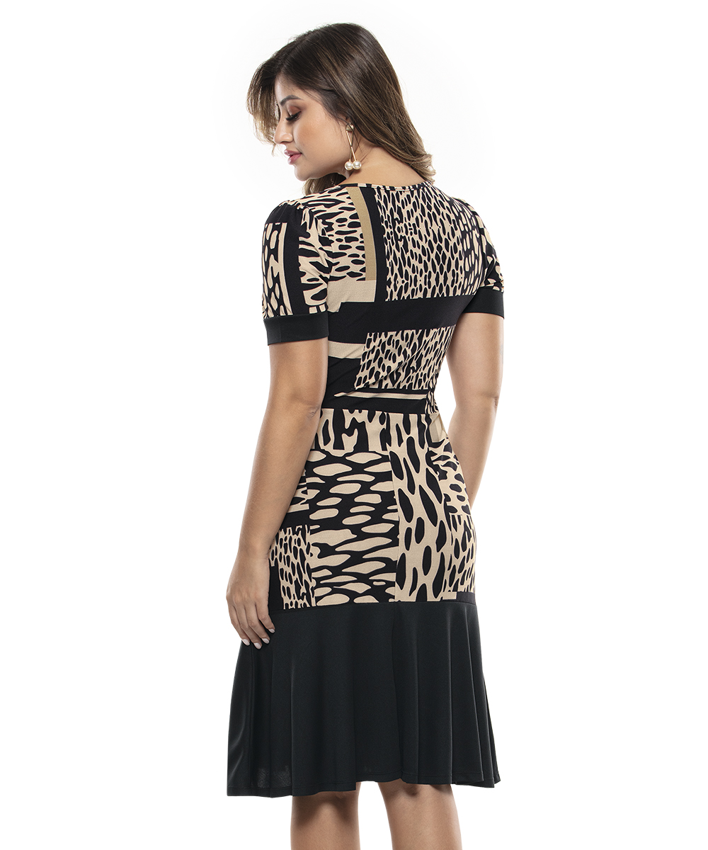 Descubra o equilíbrio perfeito entre elegância e modernidade com nosso vestido, apresentando uma estampa animal print que continua tendência! Vista-se para impressionar com estilo e sofisticação, adicionando um toque de ousadia ao seu look.