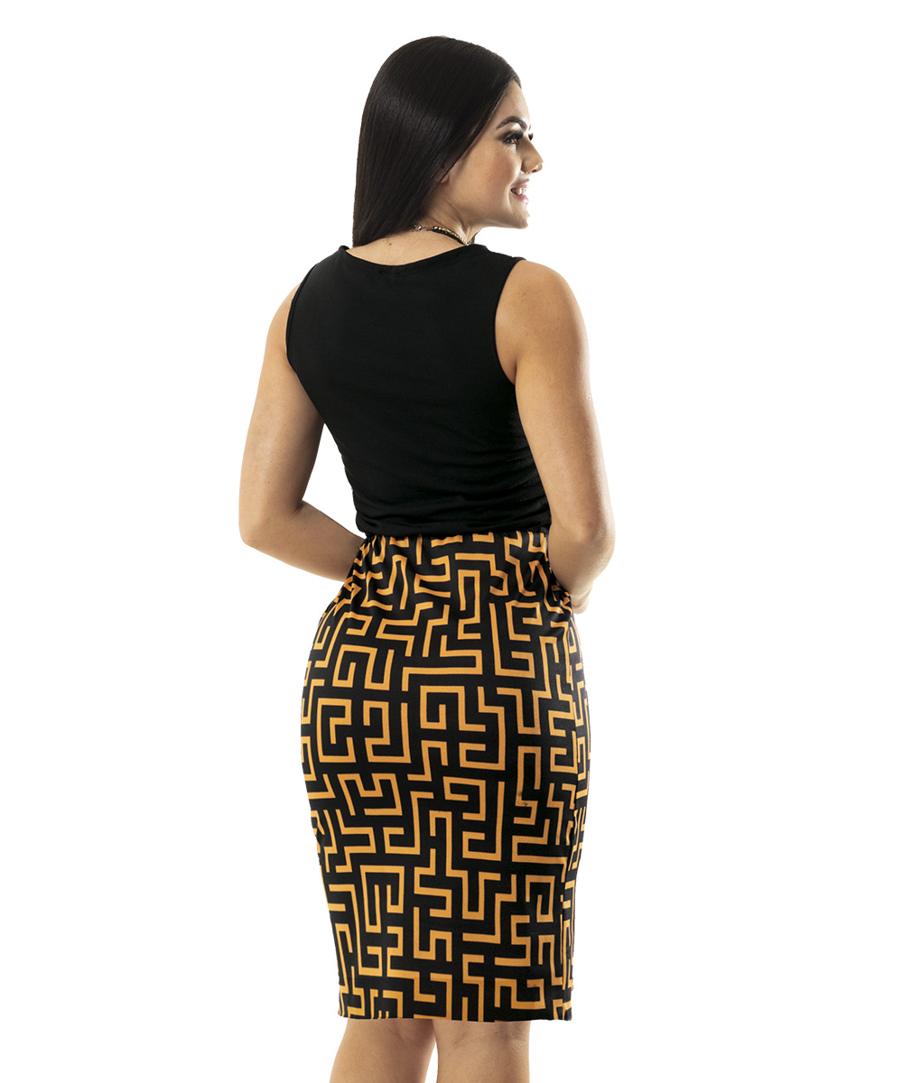 Vestido em malha crepe e poliflex