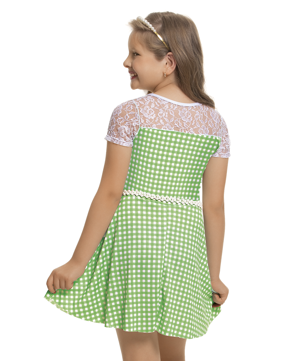 Vestido em malha crepe e renda