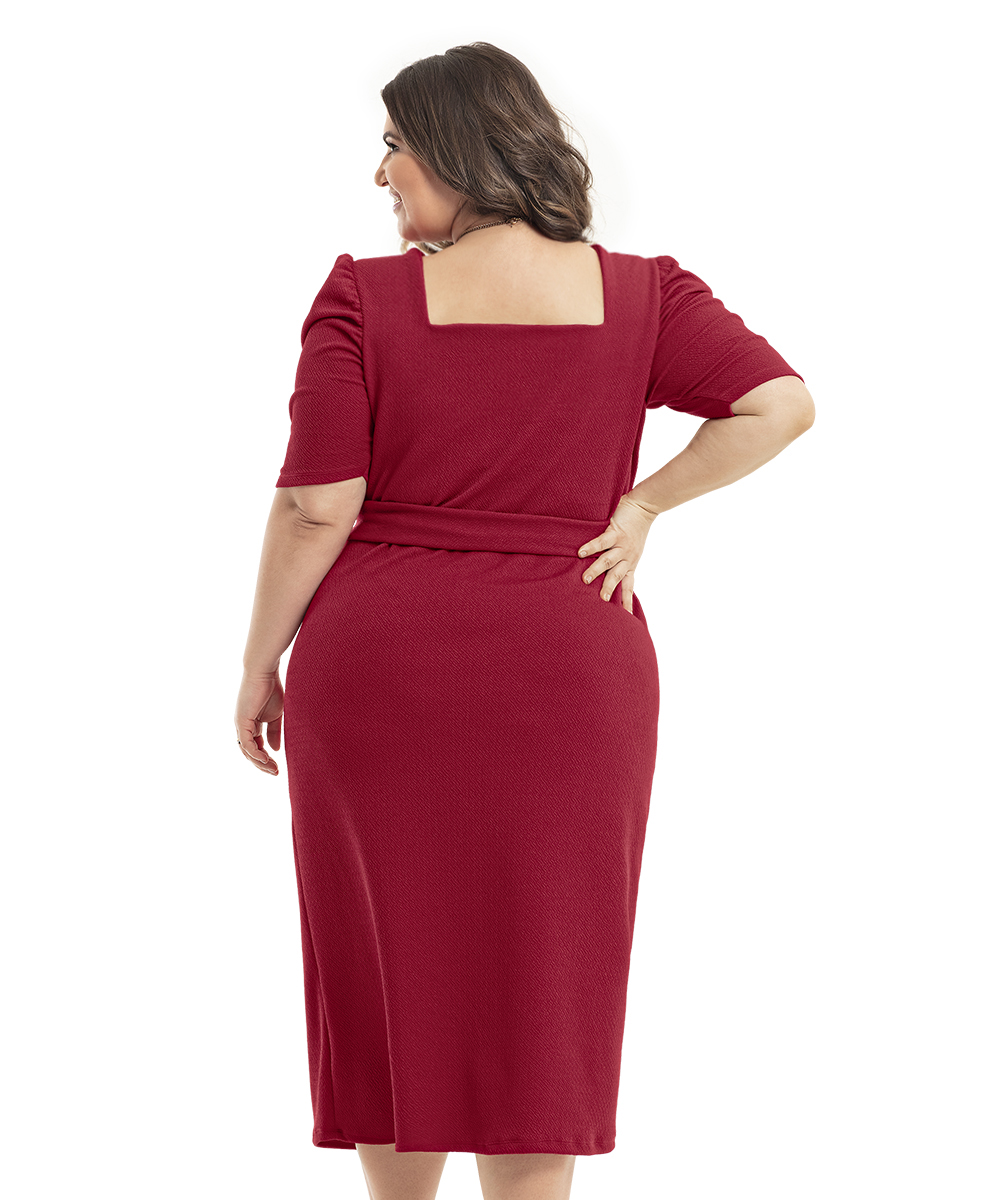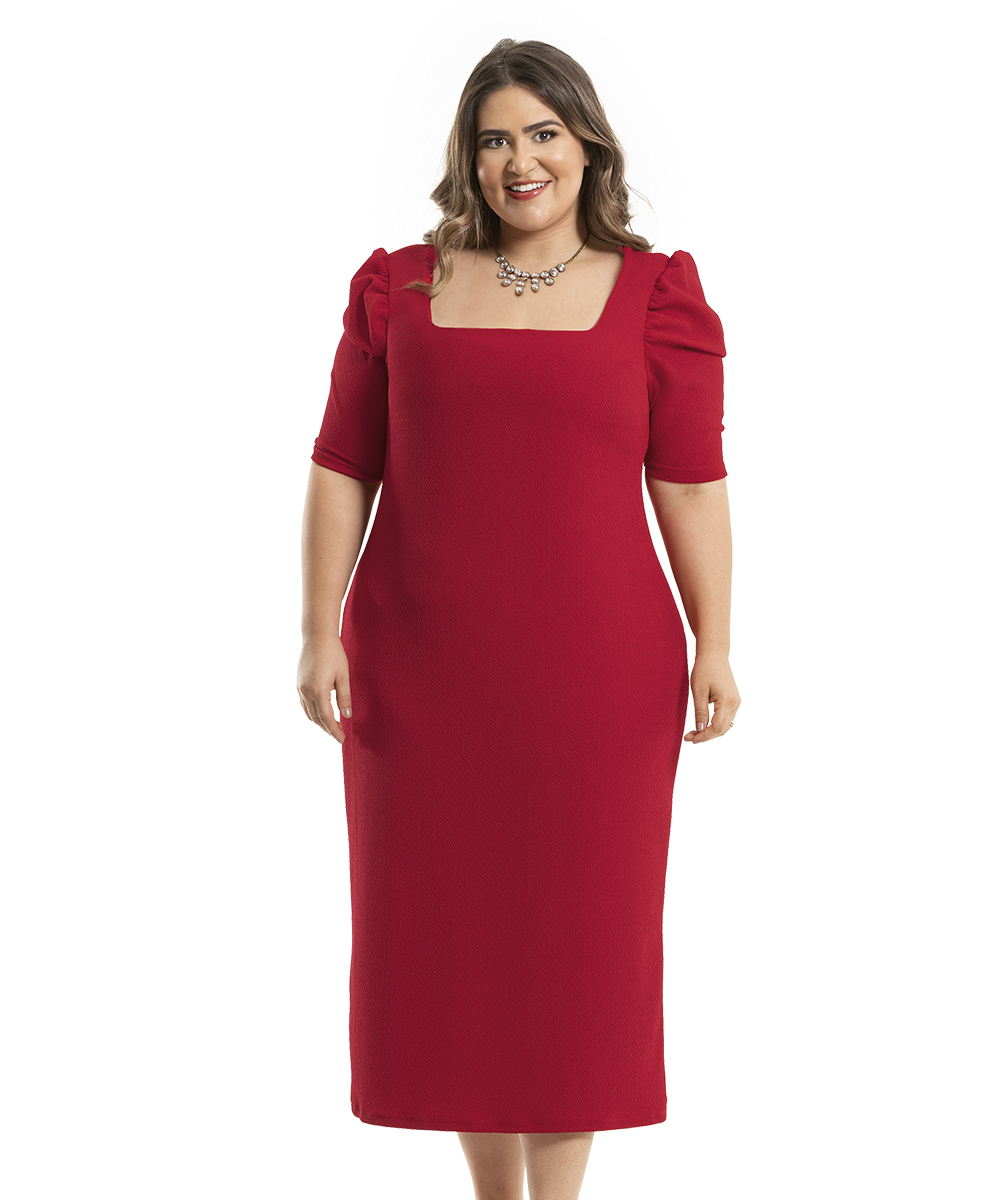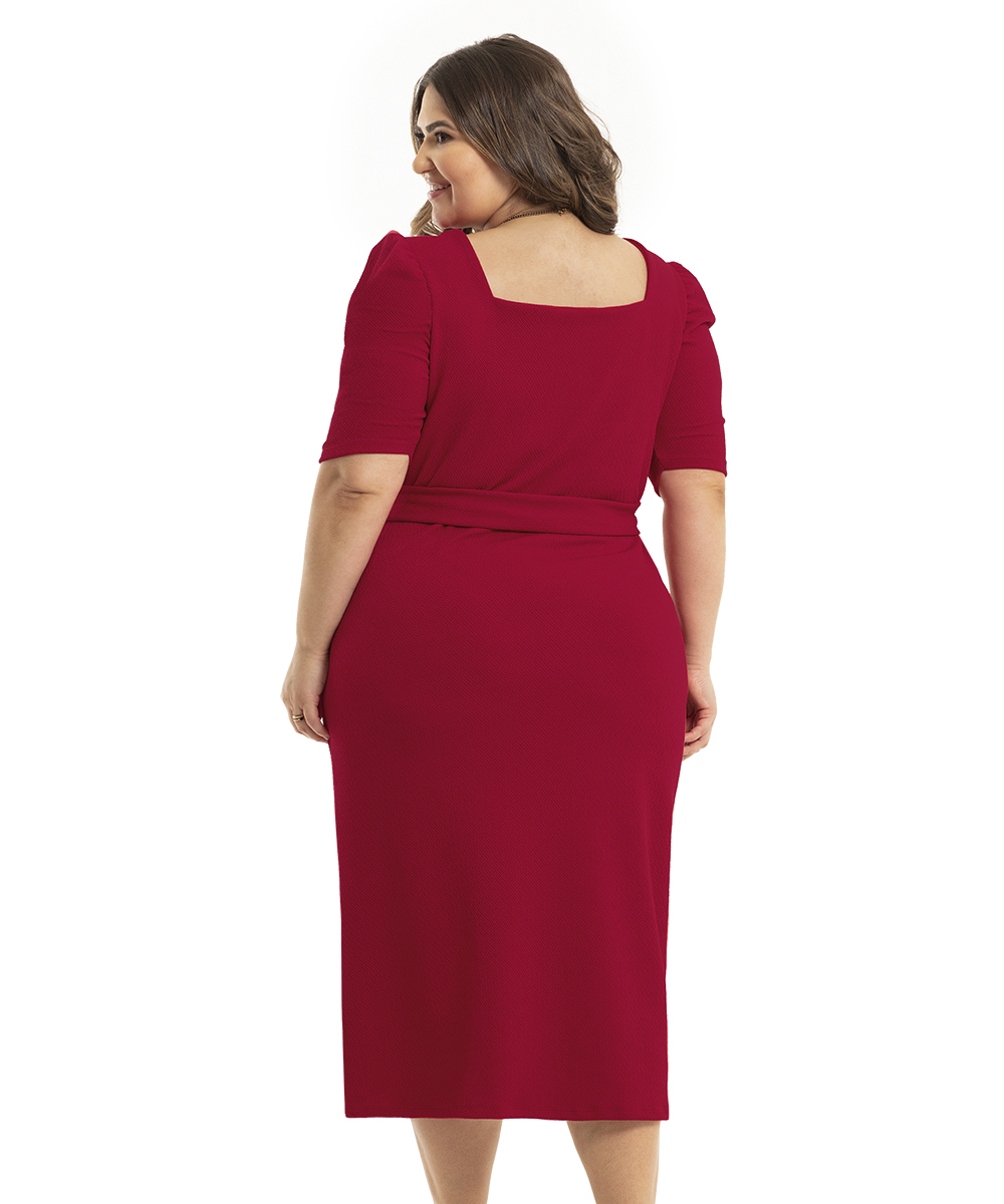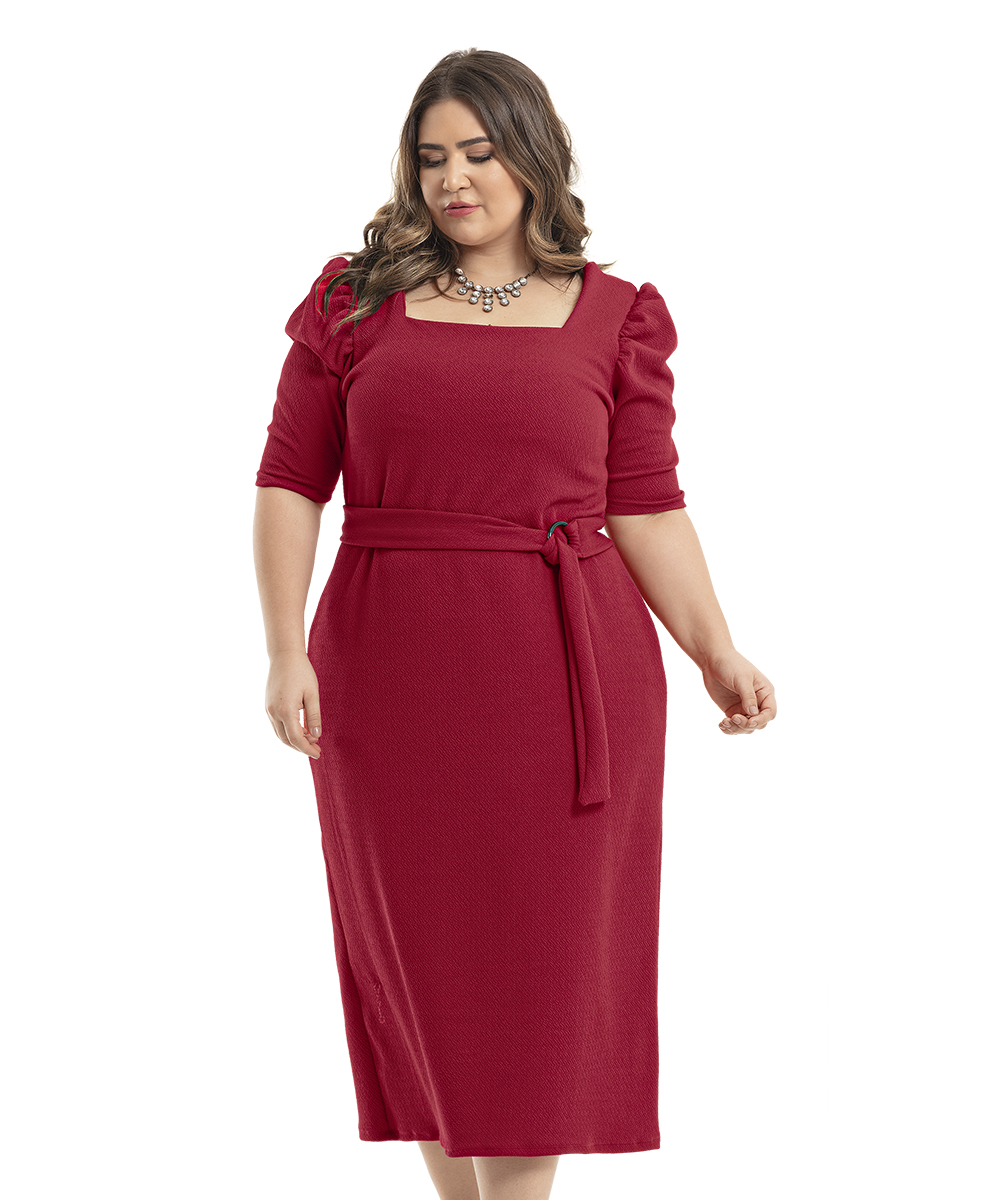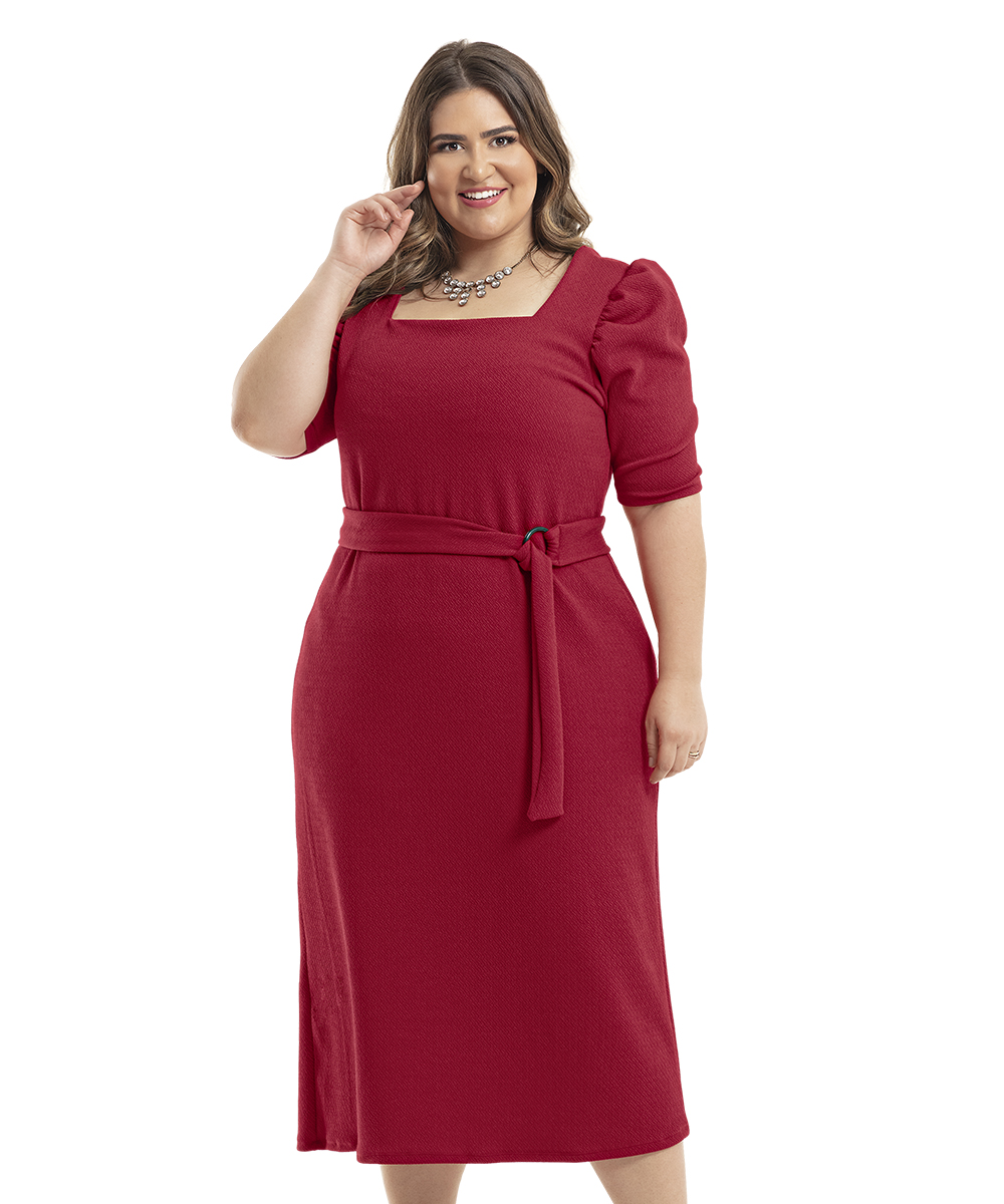 Este vestido tem modelagem reta, comprimento midi, mangas com franzido. Pode ser usado solto ou com a silhueta valorizada faixa com argola.