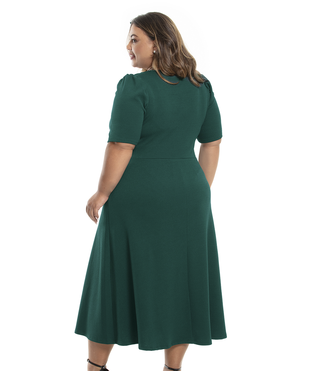 Possui decote princesa forrado e mangas bufantes na dobra do braço, que dão muito charme à peça. A modelagem da saia godê e o comprimento max garantem um look muito elegante. Combine com sandália e acessórios para arrasar por onde for.