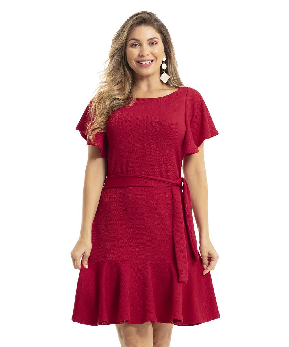 Na dúvida vá de vermelho! Esse vestido de babado é aquele romântico que a gente ama e indispensável no seu guarda roupa. Combine com acessórios para compôr um look elegante e sofisticado.