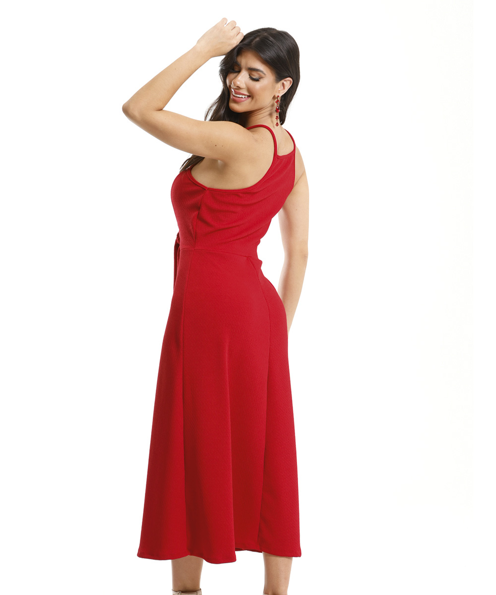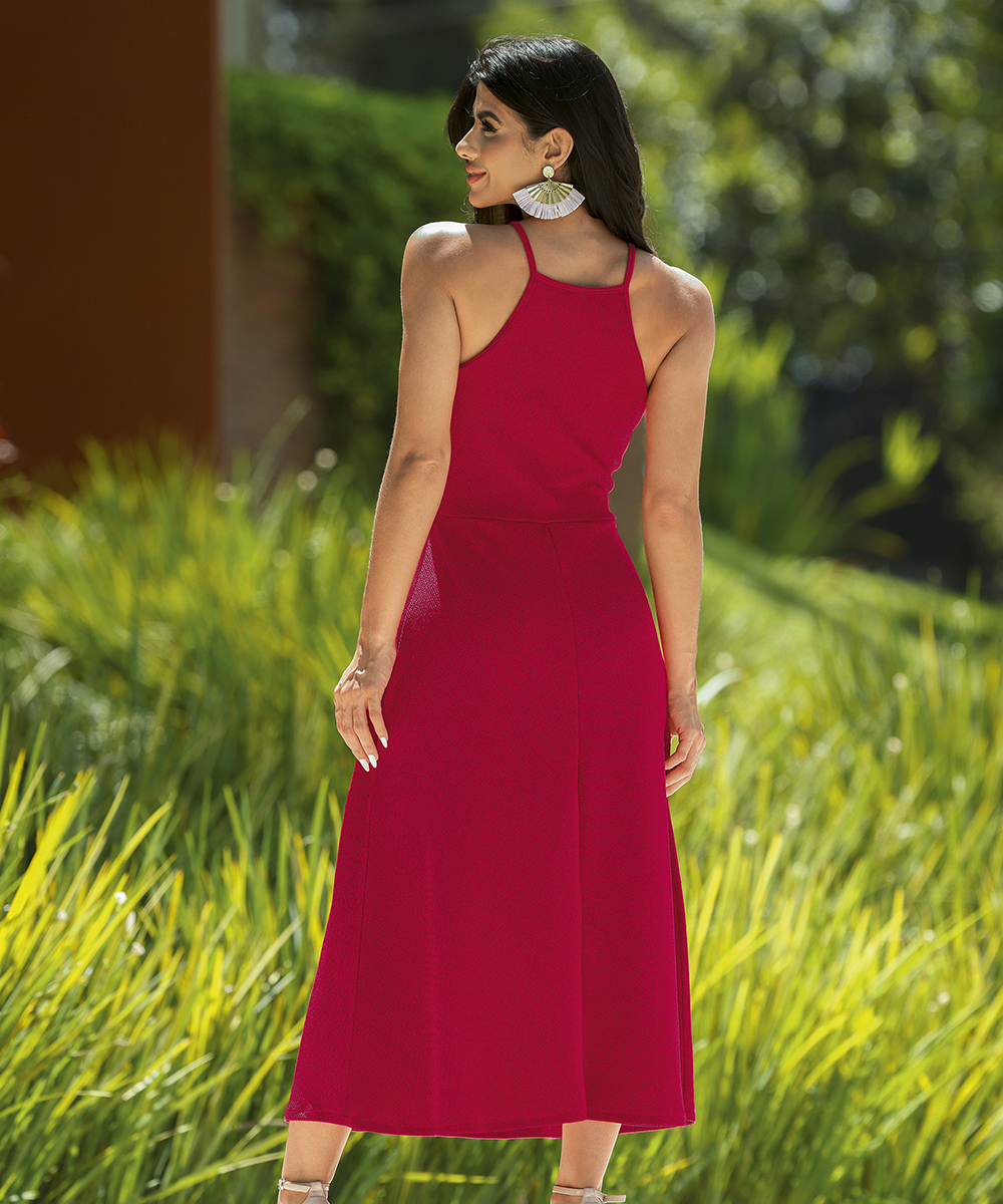 Vestido com cava americana, comprimento max, que traz feminilidade e elegância ao look.