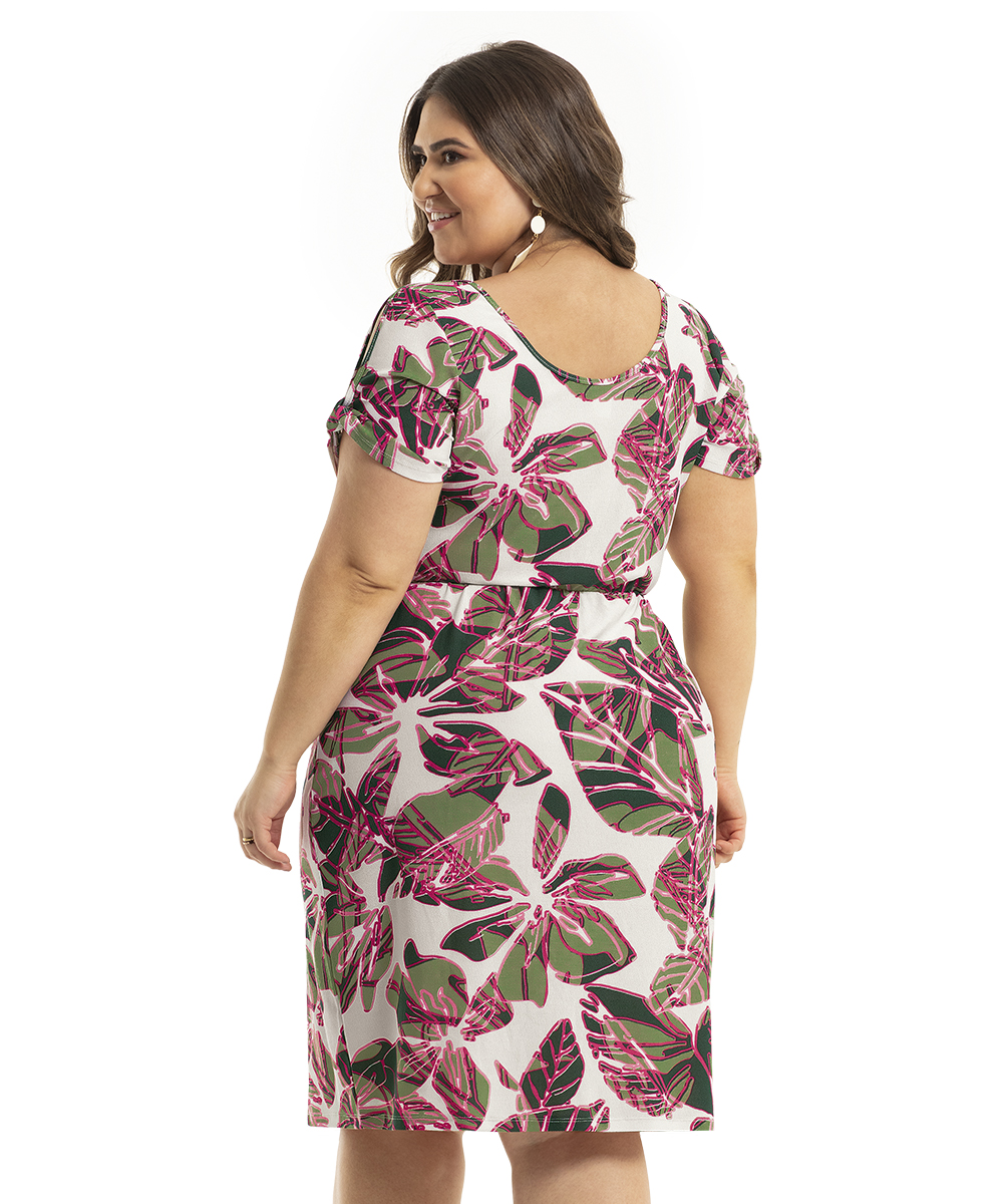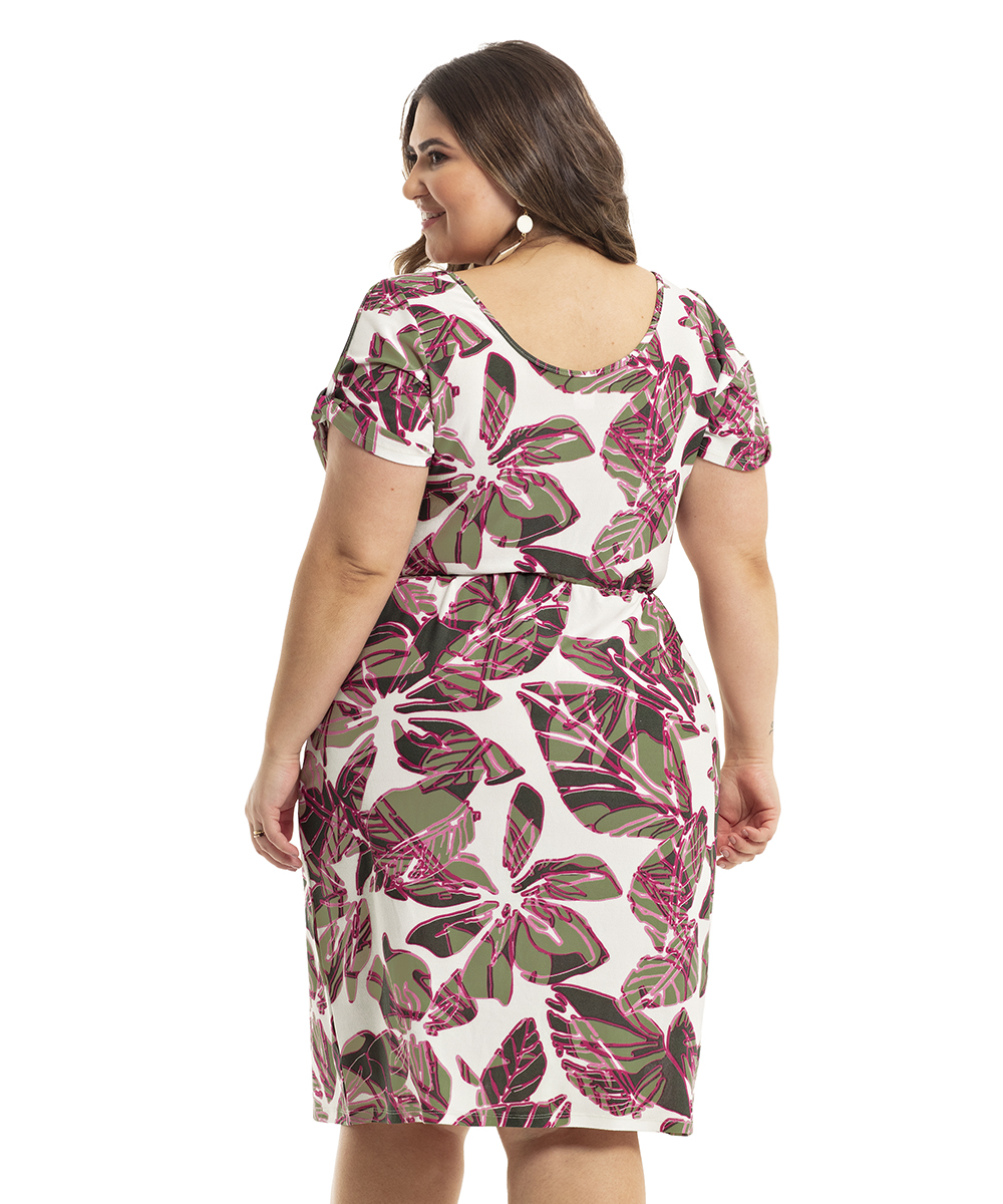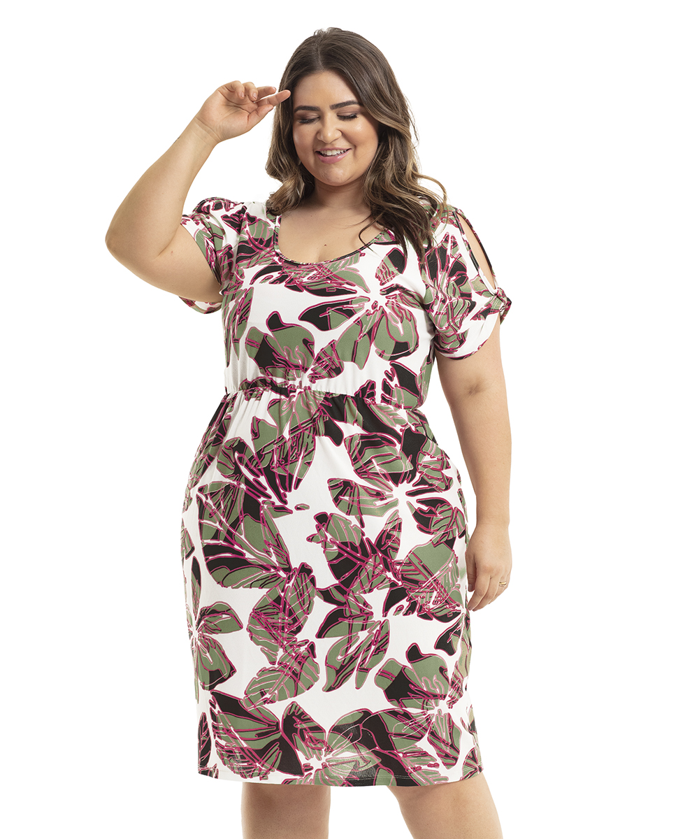 Modelo jovem com estampa moderna de folhagem. Possui detalhe de abertura nas mangas que é um verdadeiro charme.