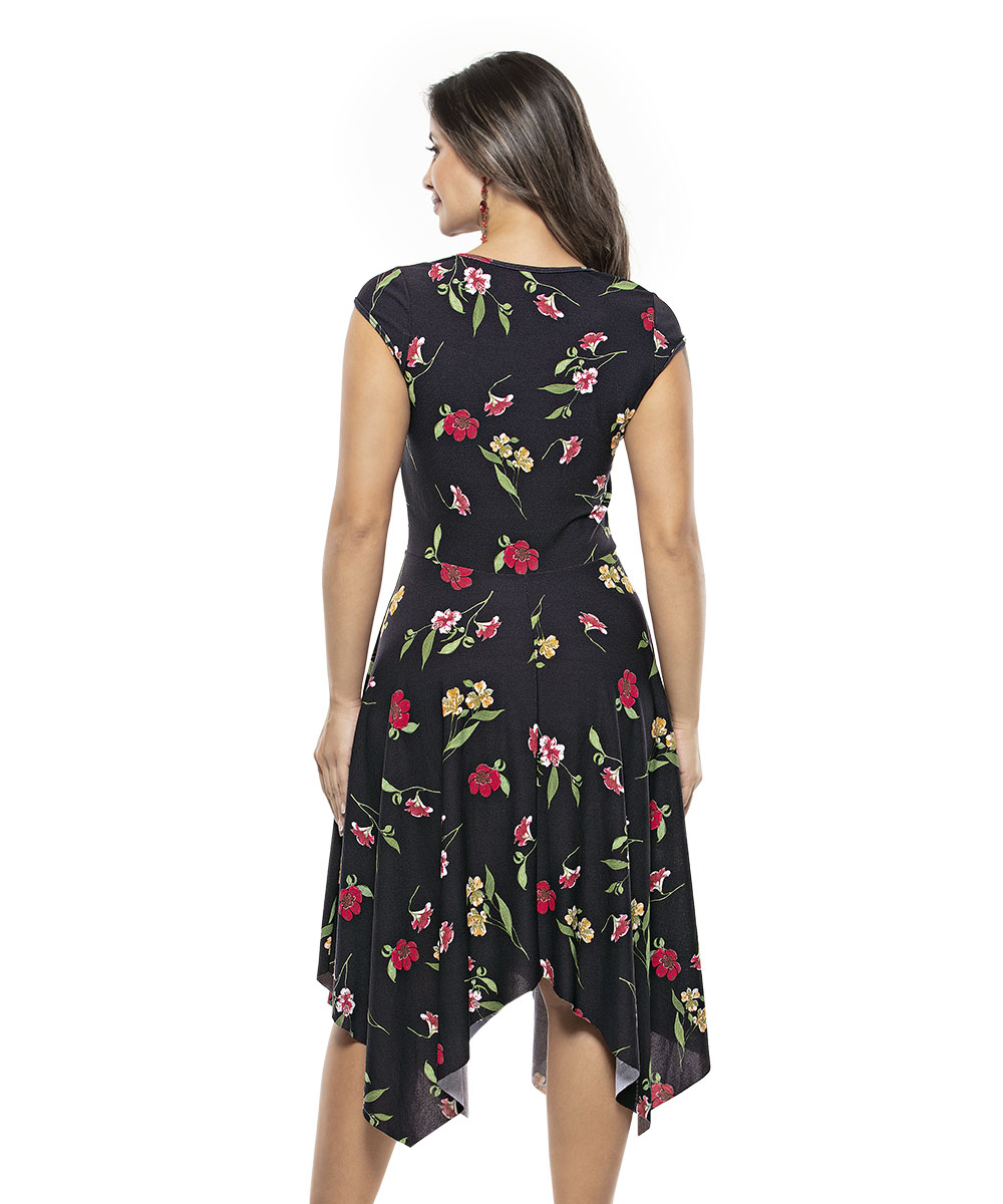 Este vestido é a escolha perfeita para quem procura estilo, conforto e leveza. Feito de malha crepe, que oferece um caimento incrível. Ele apresenta um decote discreto, além de um laço embutido para amarrar na cintura. O decote é redondo, com babado em volta e as mangas são curtas. A saia em formato godê assimétrica e o comprimento é midi. Indicado para diversas ocasiões, este vestido é simplesmente maravilhoso!