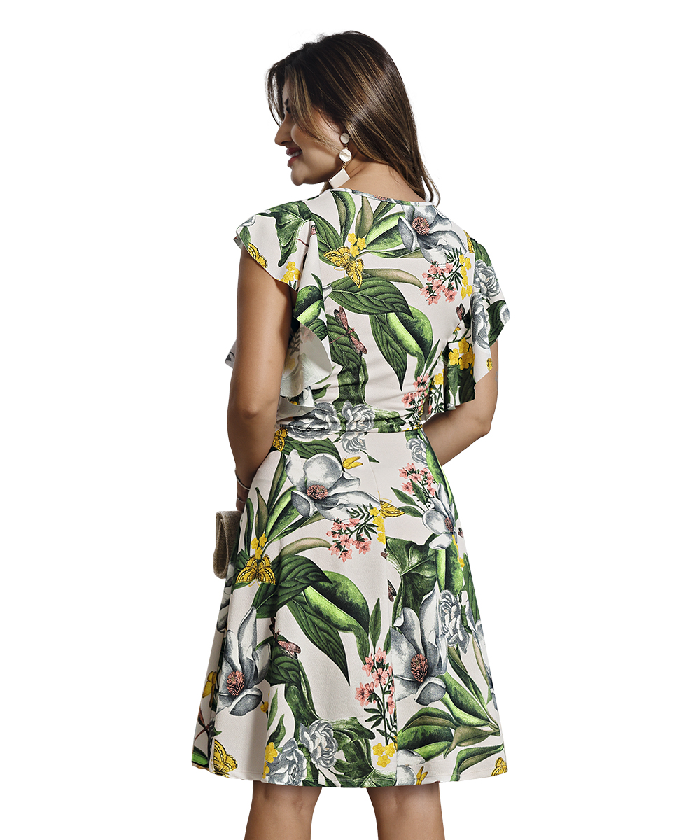 Uma estampa adorável e uma modelagem incrível compõem esse vestido em malha crepe. A saia soltinha e as mangas com babado trazem jovialidade e leveza na medida certa.