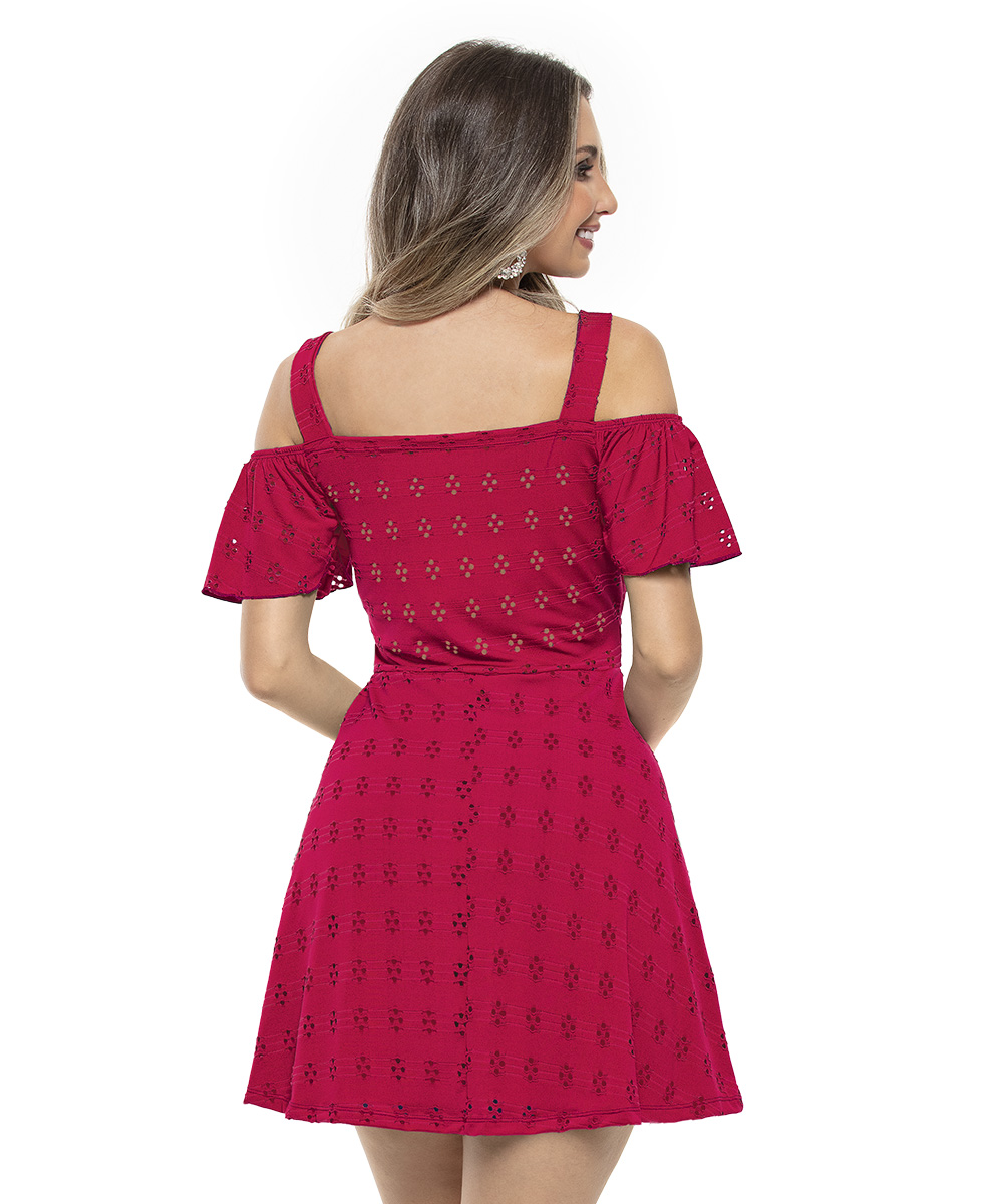 Este modelo em jersey acetinado e helanca apresenta uma estampa clássica com cores vibrantes que criam um contraste ideal. Ele é composto por uma saia evasê com babado sobreposto e uma faixa para marcar a cintura, criando um visual delicado e jovial. Além disso, a peça possui decote transpassado, mangas curtas e comprimento clássico. A modelagem da saia evasê com babado sobreposto adiciona um toque de elegância e sofisticação ao look.