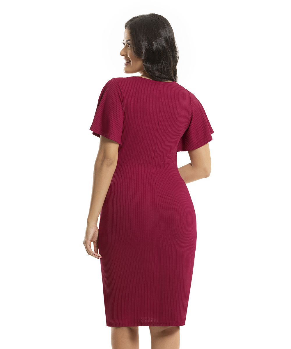 Feito em malha ribana, possui comprimento clássico, decote canoa, justo ao corpo e mangas godê.
