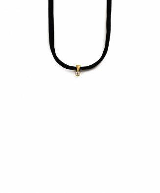 • Gargantilha Choker em camurça com detalhes folheados a ouro e strass