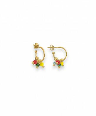 • Brincos Colors Folheados a ouro com pedras de vidro