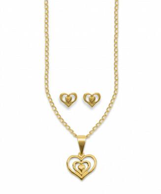 • Conjunto de Brincos e Gargantilha Três Corações Folheados a ouro