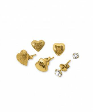 • Conjunto com 3 pares de Brincos Amoroso Folheados a ouro com strass