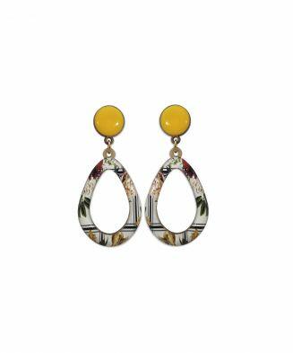 • Brincos Flamenco em madeira com resina e detalhes folheados a ouro