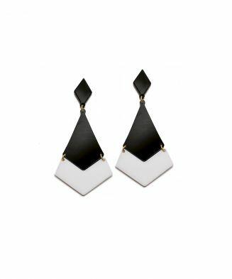 • Brincos Black White em acrílico com detalhes folheados a ouro