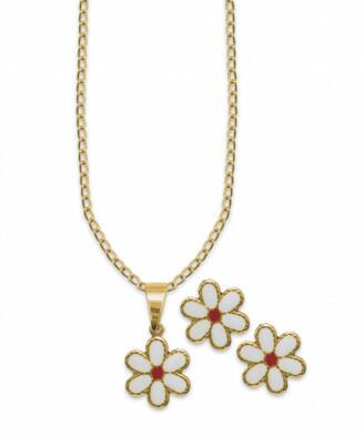• Conjunto de Brincos e Gargantilha Flor Folheados a ouro com resina