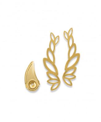 • Brincos Messina em madeira com resina e detalhes folheados a ouro