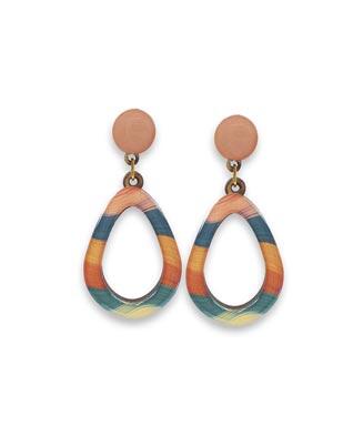 • Brincos Colorido em madeira com resina e detalhes folheados a ouro