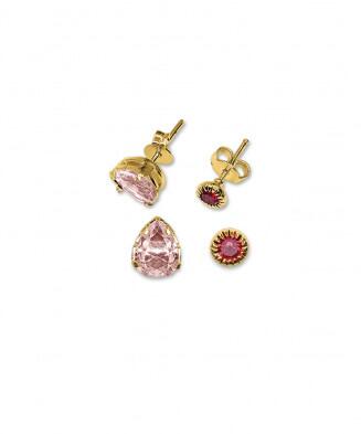 • Conjunto com 2 pares de Brincos Caress Folheados a ouro com strass