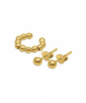 • Conjunto de Brincos e Piercing Bolinhas Folheados a ouro