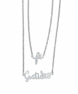 • Gargantilha Dupla Fé e Gratidão em aço inox