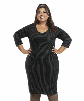 Vestido em jacquard light risca de giz