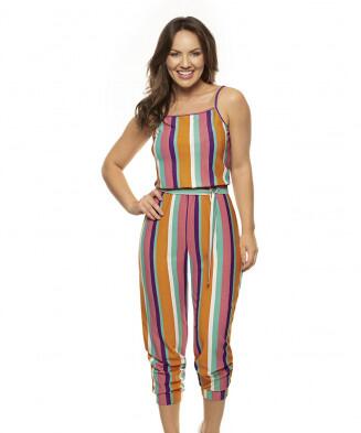Macacão pantacourt em jersey acetinado