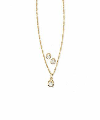 Conjunto de Brincos e Gargantilha Granada Folheados a ouro com strass