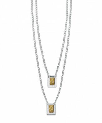 Escapulário Louvado em aço inox com detalhes dourados