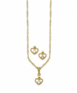Conjunto de Brincos e Gargantilha Amorzinho Folheados a ouro com zircônia