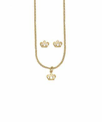 Conjunto de Brincos e Gargantilha Coroa Folheados a ouro