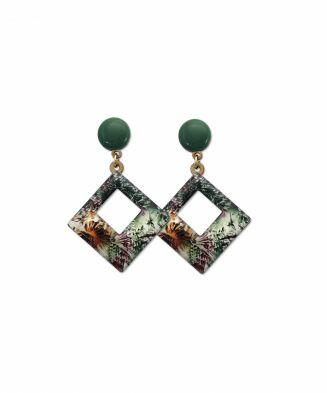 Brincos Grace Bay em madeira com resina e detalhes folheados a ouro