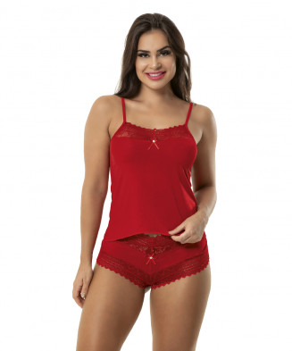 • Conjunto (Blusa e caleçon) em poliamida e renda com elastano