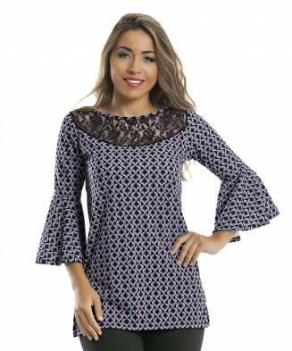 • Túnica em jersey acetinado e renda