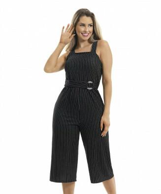 • Macacão em jacquard light risca de giz