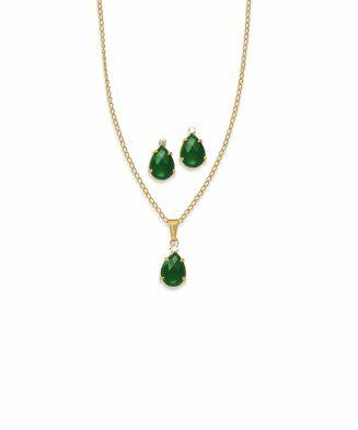 • Conjunto de Brincos e Gargantilha Gotas Verdes Folheados a ouro com strass e