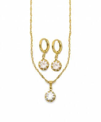 • Conjunto de Brincos e Gargantilha Vislumbre Folheados a ouro com zircônia