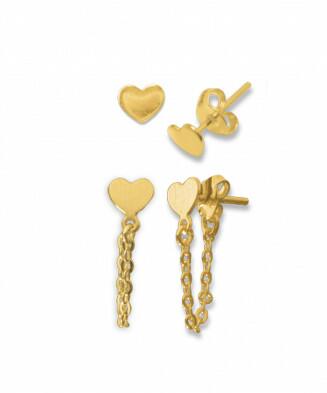 • Conjunto com 2 pares de Brincos Unidos Folheados a ouro