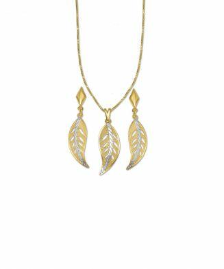 • Conjunto de Brincos e Gargantilha Folha Folheados a ouro com ródio